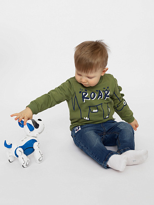 Джемпер с длинным рукавом. Горловина круглая, окантована бейкой. Перед декорирован принтом.