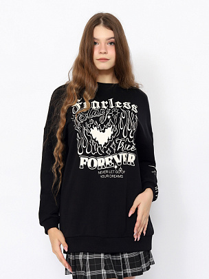 Джемпер для девочки с длинными рукавами. Горловина круглая, обработана притачной бейкой. На полочке деворативная шелкография.