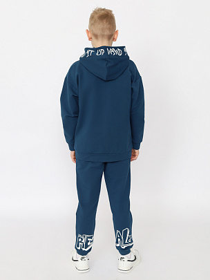 Брюки с притачным поясом и манжетами. Пояс из основного полотна и эластичной резинкой внутри. Низ брюк с притачными манжетами из полотна с добавлением лайкры. Задняя часть декорирована принтом "Реальный".