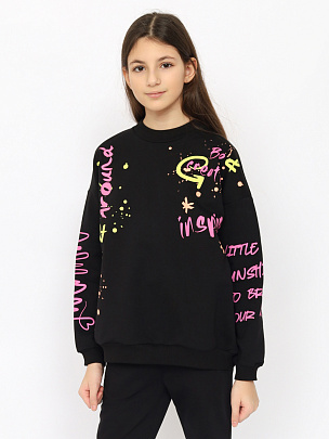 Брюки с притачным поясом и манжетами. Пояс из полотна с добавлением лайкры и эластичной резинкой внутри. Низ брюк с эластичной резинкой внутри. Передняя половинка брюк декорирована принтом "Продолжай катиться".