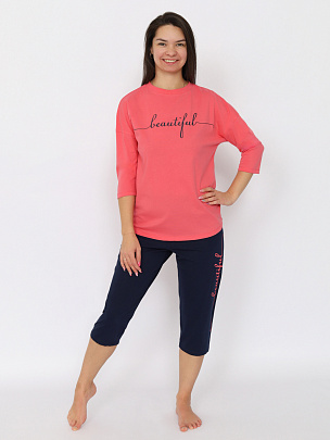 (222) Комплект для девочки (платье типа "туника", бриджи) светло-розов