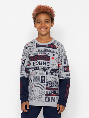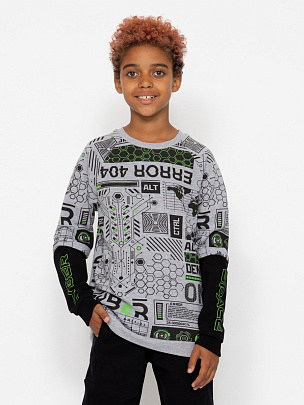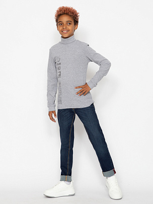 Водолазка для мальчика с воротником-стойкой, с отворотом. Рукава длинные с манжетами из основного полотна по низу. Перед водолазки декорирован принтом "Проследи свой путь".