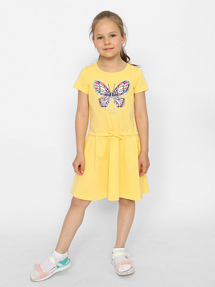 Платье для девочки с втачными рукавами 3/4. Воротник вязанный, отстегивающийся. Спинка со средним швом, в верхней части которого обработана застежка на пуговку.