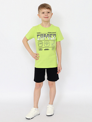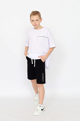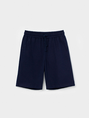 Шорты для мальчика с боковыми карманами и притачным поясом из основного полотна. В пояс вставлена резинка и функциональный шнур.