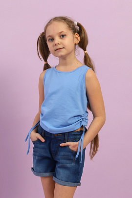 Шорты для мальчика с боковыми карманами и притачным поясом из основного полотна. В пояс вставлена резинка и функциональный шнур.