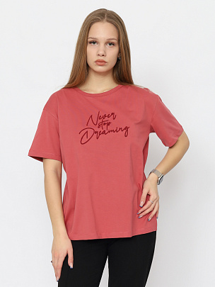 Футболка прямого силуэта с короткими рукавами. Горловина круглая, обработана притачной бейкой из рибаны с лайкрой. Перед футболки декорирован блестящим принтом, имитирующим пайетки.